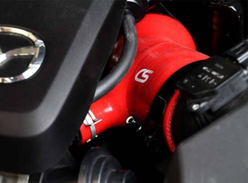 The Mazdaspeed 3 Silicone Intake Elbow is a great upgrade to dress up your engine bay, replacing the accordion style plastic oem hose. For those people that want that look and smoother airflow with an upgraded panel filter in their stock airbox.