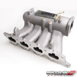 Skunk2 is a familiar name in the intake manifold business, with more than 10 years of experience designing, testing, and building them. Similar to OEM manifolds, Skunk2's Pro Series Intake Manifolds are shell-molded from 356-aluminum, CNC-machined for superior strength, a precise fit, and a high-quality finish, and vacuum-tested for quality. Each manifold is molded with smooth transitions from the throttle body opening to the plenum to the runners with clean parting lines for an optimal finish, both inside and out and features a genuine Skunk2 nameplate.